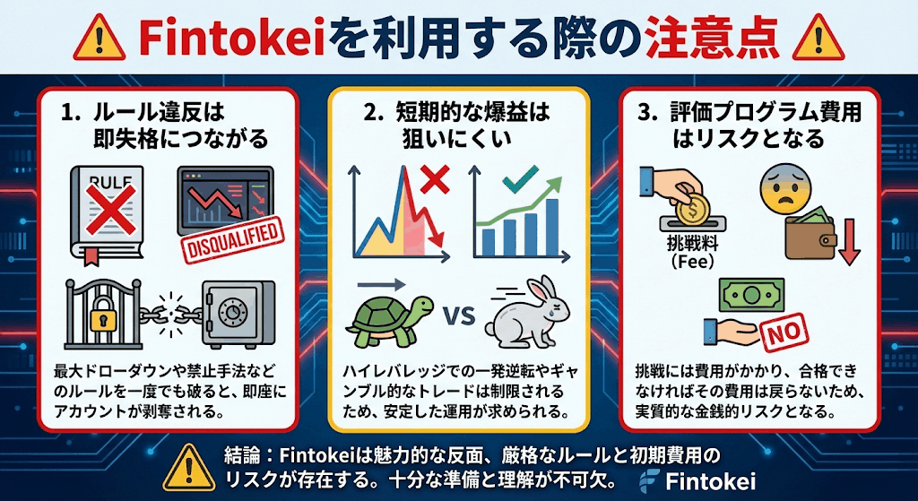 Fintokeiのルールは、リスク管理を徹底しなければ突破できない構造になっています。