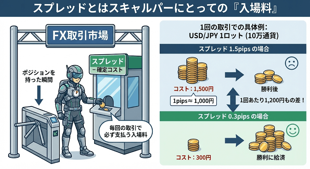 つまり、スキャルピングでは「毎回の取引で必ず支払う入場料」のようなものになります。
