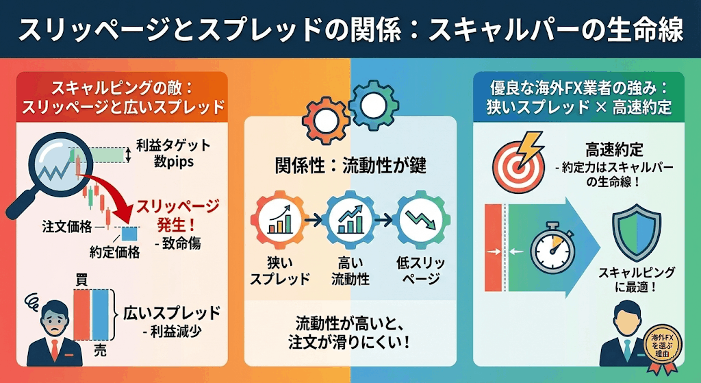 しかし、優良な海外FX業者は、狭いスプレッドと高速約定を両立させています。